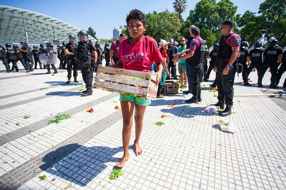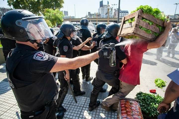 Hoy los vendedores de verduras protestaron frente a Plaza Constitución y fueron reprimidos por la Policía de la Ciudad.