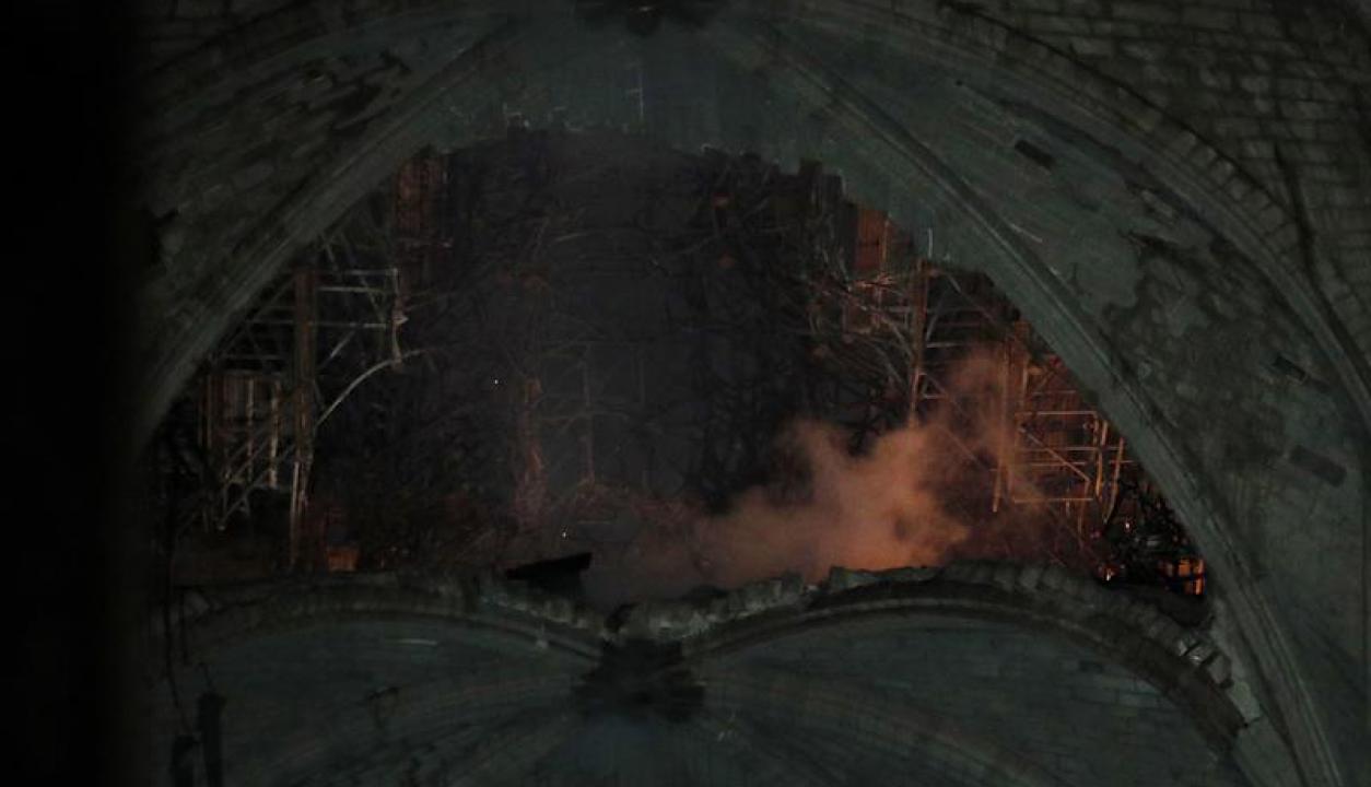 Poco antes, los bomberos habían expresado dudas sobre la posibilidad de que puediera sofocarse el devastador incendio y evitar el derrumbe de la catedral parisina.