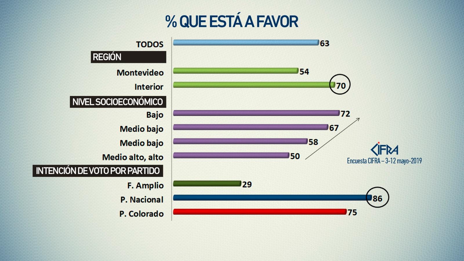 El 54 % de los montevideanos votaría a favor de la reforma, mientras que en el interior del país el número aumenta: un 70 % está de acuerdo.