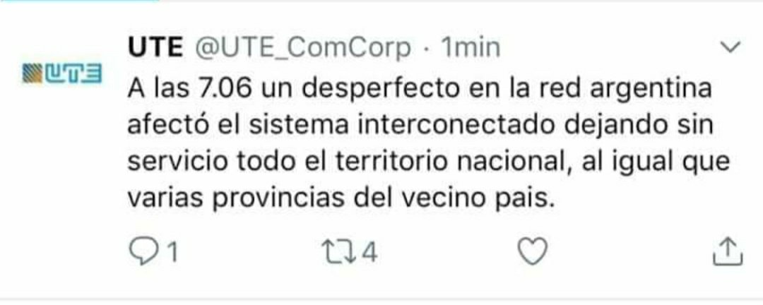 Uruguayos de todas las localidades reportan en la redes estar sin energía eléctrica, a Oktubre noticias han llegado reportes de Rivera, San Carlos, villa española, piedras blancas, Soriano y colonia.