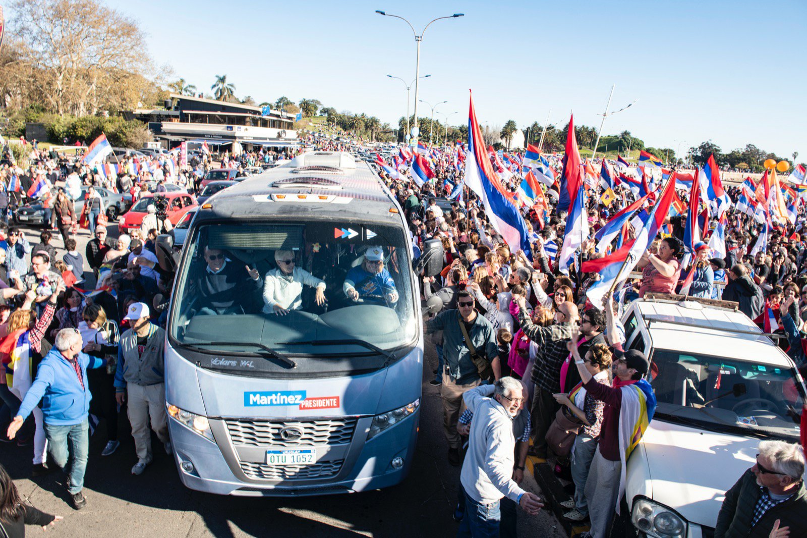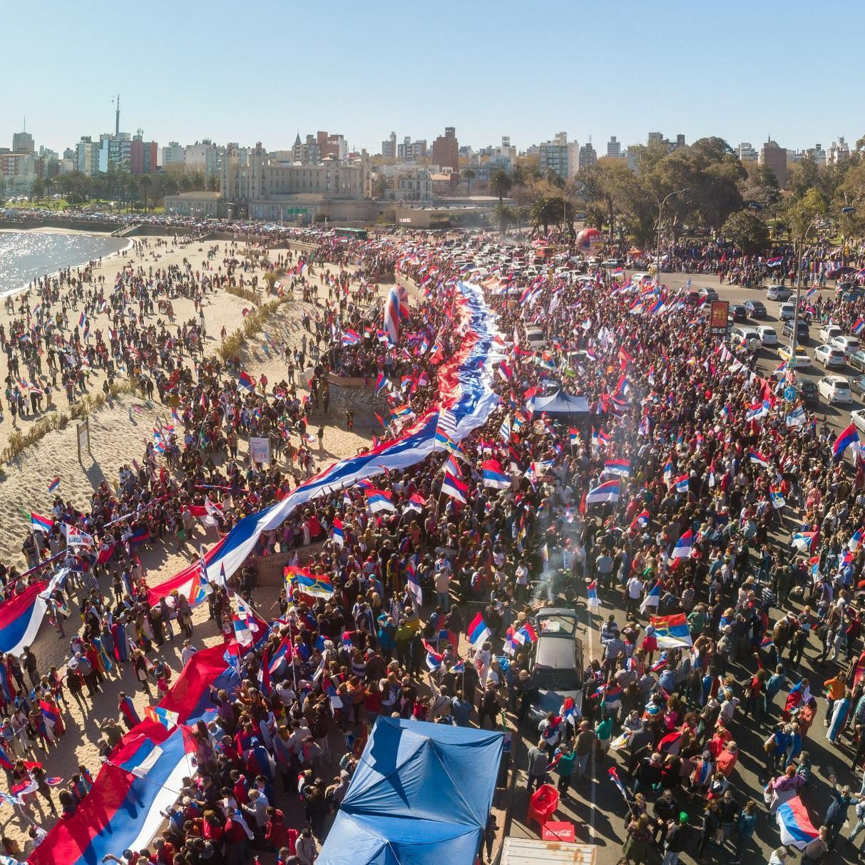 El Frente Amplio se juntó en la playa Ramírez a bailar al ritmo de su jingle, la «ola esperanza», y desplegar la bandera de 250 metros confeccionada en los últimos días.