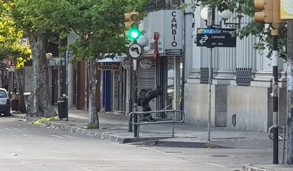 La brigada antiexplosivos del ejército nacional trabaja sobre un artefacto ubicado sobre el cambio que está pegado a la sucursal del Banco República de 8 de octubre y Larravide.