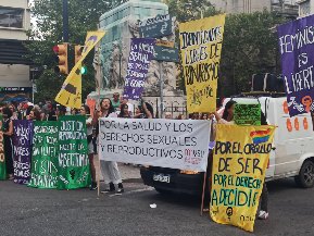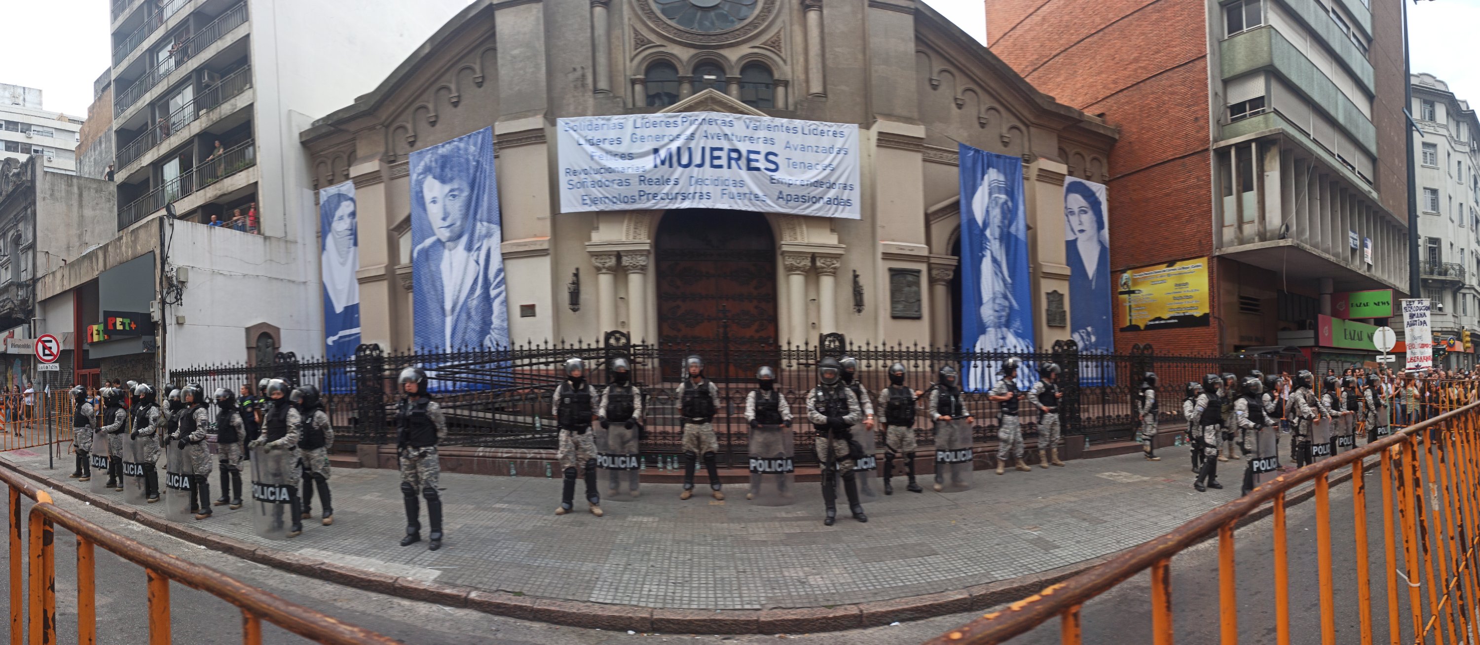 «Mujer, escucha, únete a la lucha», e «Iglesia,Estado, asuntos separados» cantaban las decenas de Miles que pasaban por la puerta.