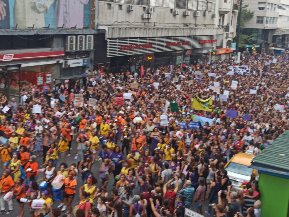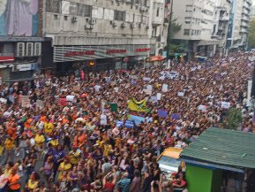 Una enorme marea de alrededor de 200.000 personas inundó la avenida principal en una nueva edición de la marcha por el día de la mujer.
