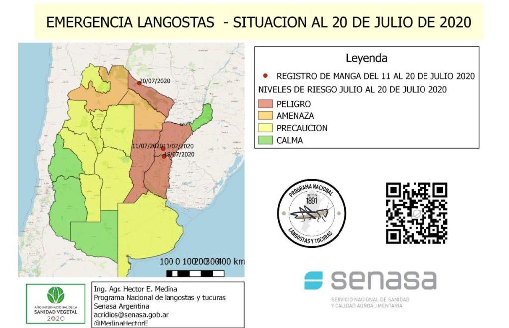 El empresario, que además dirige Progreso Aeroservicios, señaló a Radio Sarandí que hay dos aviones en patrullaje para detectar el probable ingreso de las mangas de ese insecto, ya que hay dos de ellas a distancias de 40 y 80 kilómetros en línea recta de la zona de las termas del Arapey, entre las ciudades de Salto y Bella Unión.