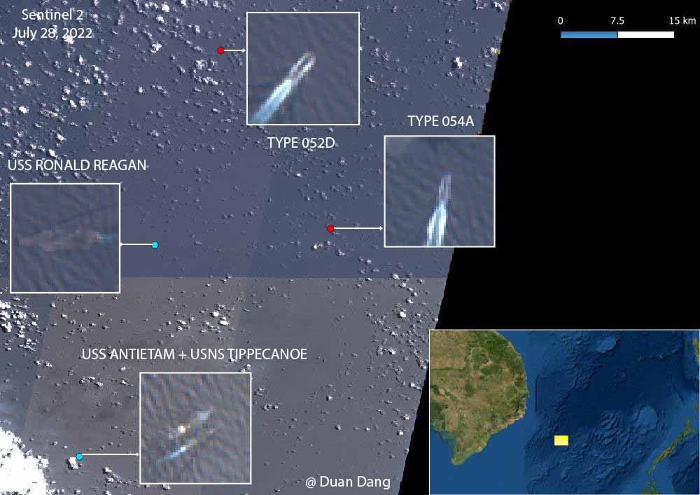 Mientras tanto, en el Mar del Sur de China, el portaaviones estadounidense Ronald Reagan y su grupo de ataque han navegado cerca de las zonas en disputa de las islas Spratly, seguidos de cerca por buques de guerra.