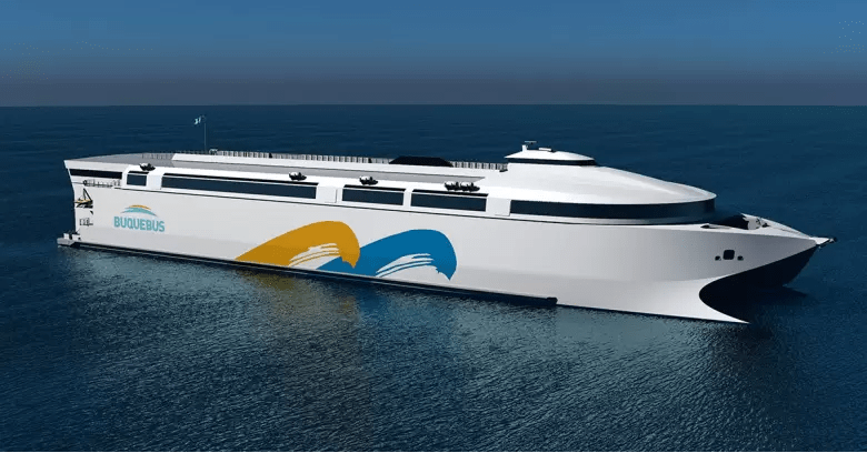 La compañía de transporte fluvial que une nuestro país con Argentina ya está construyendo el que será el ferry eléctrico, a baterías, más grande del mundo. Aún sin nombre la embarcación tendrá 130 metros de eslora (5 metros más que el buque Silvia Ana) y fue desarrollado por la firma Incat Tasmania.